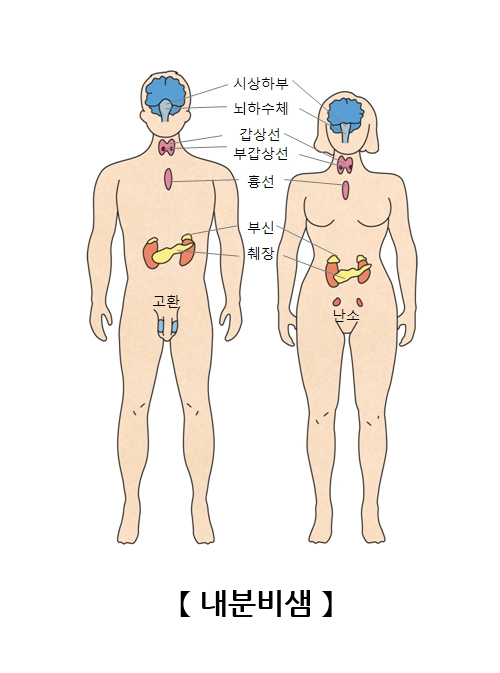 분비샘은 분비물을 배출하는 기관으로 내분비샘과 외분비샘이 있습니다. 내분비샘은 분비 세포에서 나오는 호르몬을 직접 혈관으로 배출하여 뭄 안에서 순환하도록 하며, 외분비샘과 다르게 분비물을 배출하는 일정한 관이 없는 분비샘입니다. 이에 반해 외분비샘은 일정한 관을 통해 몸 밖이나 소화관으로 분비물을 배출하는 기관입니다.