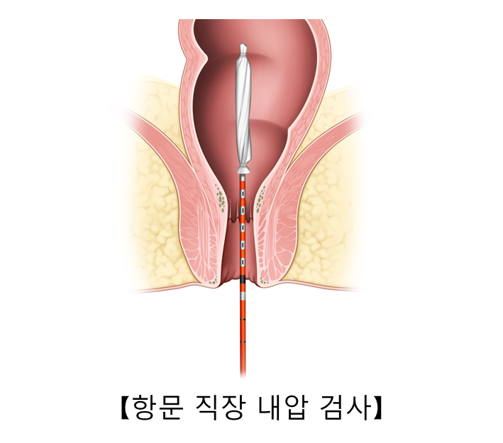 카테터(작은 도관)를 이용하여 항문에 힘을 주지 않을 때나 항문을 꽉 조일 때의 항문 내 압력을 측정하고, 항문 괄약근의 기능을 객관적, 정량적으로 평가하는 검사법입니다. 항문 입구로부터 6cm 정도 안쪽으로 압력 카테터를 넣고 천천히 바깥쪽으로 당기면서 항문관의 압력을 측정합니다. 변실금을 호소하는 환자에게 이 검사를 시행하였을 때 내항문 괄약근이나 외항문 괄약근 중 하나, 또는 두 괄약근이 낮은 압력으로 측정되는 경우가 많습니다.